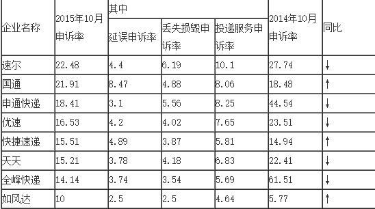 速爾、國通、申通三家占據(jù)投訴榜前三,其中,國通延誤率是所有快遞公司中最高的,而申通的丟失損毀投訴率和投遞服務申訴率也雙雙“高居”全國第二,僅次于速爾。